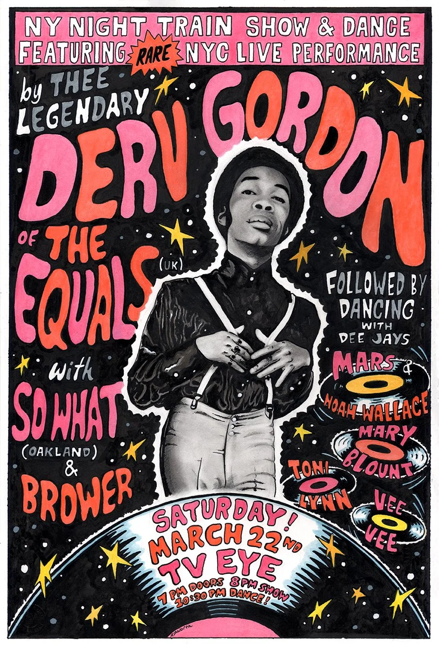 It’s been a hot minute since I did anything for Jonathan Toubin but we are back at it with a NY Night Train Show & Dance event at TV EYE this March. Originally slated to be a Soul Clap Anniversary bash, things had to be rearranged due to a scheduling conflict so this year the event will be from 8pm-midnight-ish instead of the usual all night jamboree. But, in usual fashion, Jonathan went big and is bringing in an iconic performer for the festivities and it’s none other than Derv Gordon of The Equals!